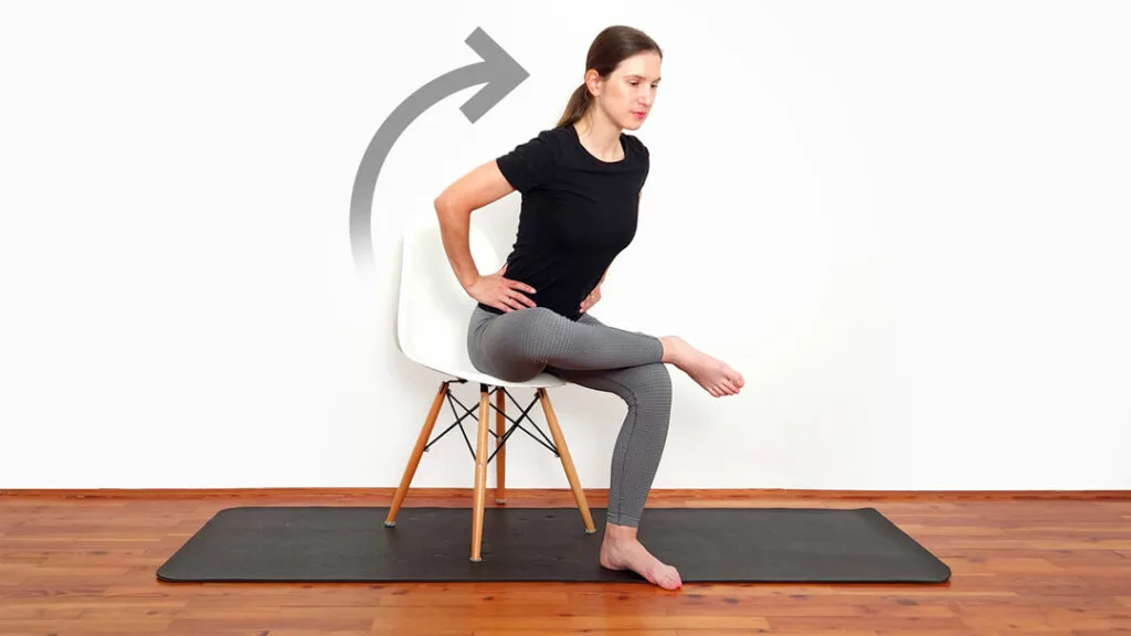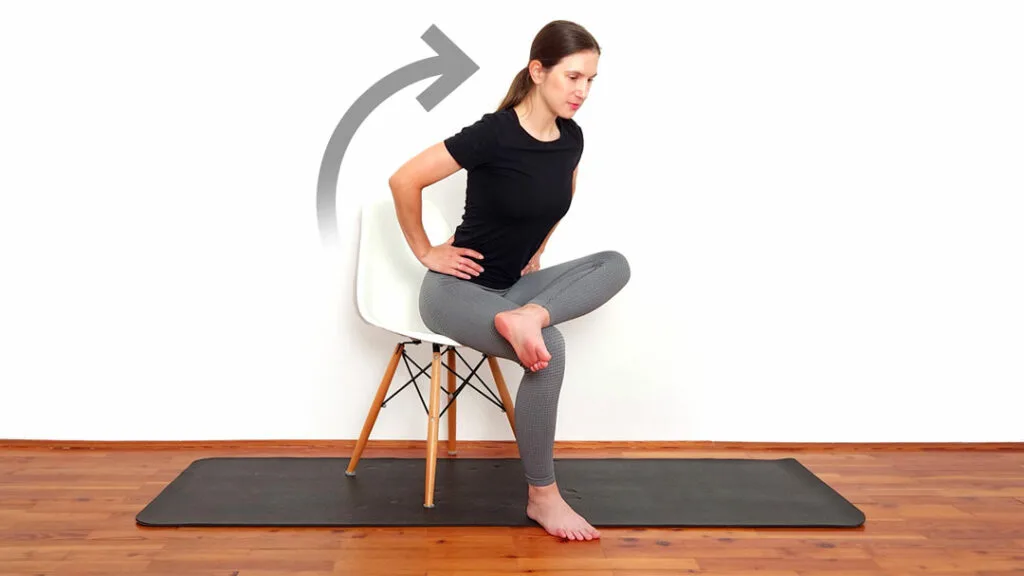 2. Strečing piriformis v sede – forma čísla 4 pre uvoľnenie panvy