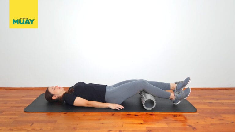 Ľahnite si na chrbát s malým valcom alebo vankúšom umiestneným pod kolenami.