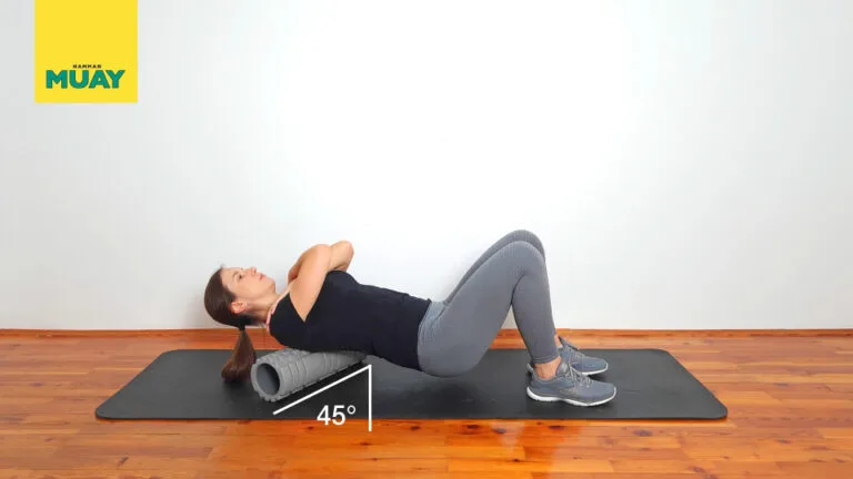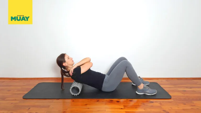 Relaxačný strečing stredu chrbta pomocou penového valca na uvoľnenie svalového napätia a zlepšenie mobility chrbtice. Ideálne pre administratívnych pracovníkov aj športovcov.