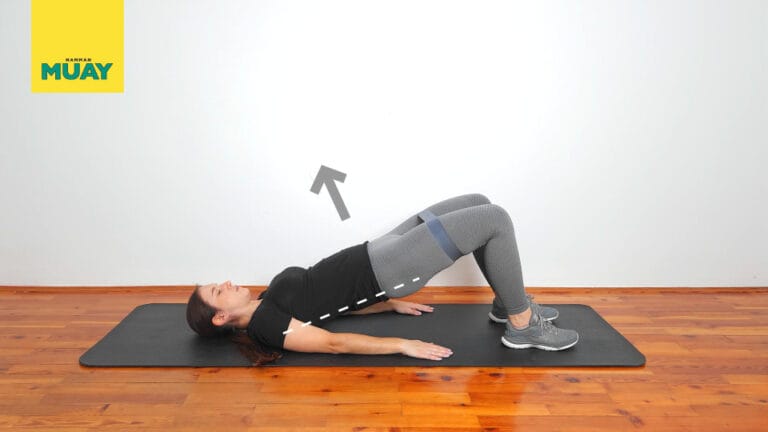 Mostík s odporovou gumou posilňuje sedacie svaly a hamstringy a zároveň aktivuje stabilizačné svaly. Táto variácia pridáva dodatočný odpor na zlepšenie sily a kontroly bokov.