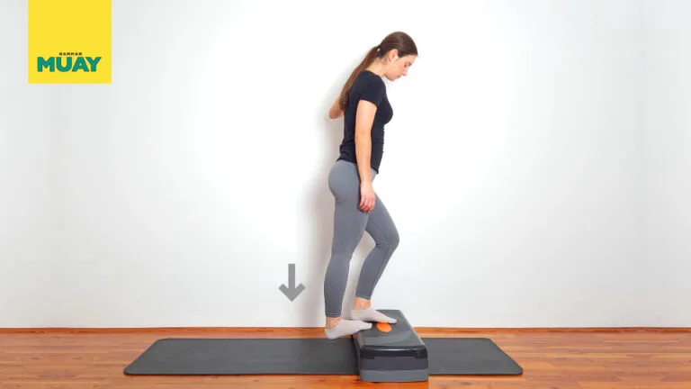 Jednoduchý strečing Achillovej šľachy na schode na uvoľnenie stuhnutých lýtok, zlepšenie mobility členka a podporu odolnosti šľachy.